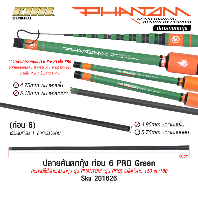 CEMREO ปลายคันตกกุ้ง - รุ่น PHANTOM ( ท่อน 6 ) PRO Green