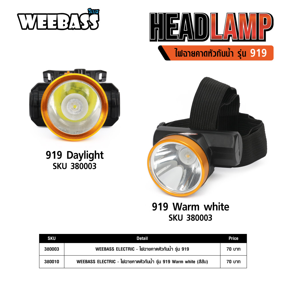 WEEBASS ELECTRIC - ไฟฉายคาดหัวกันน้ำ รุ่น 919