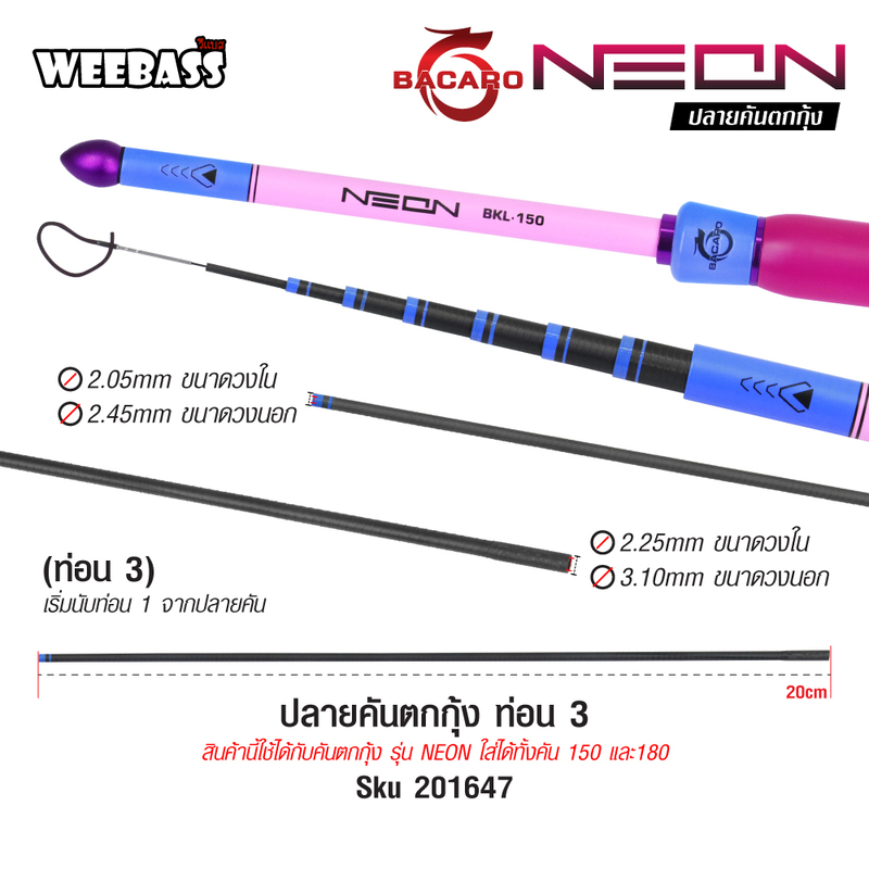 BACARO ปลายคันตกกุ้ง - รุ่น NEON ท่อน 3 Blue