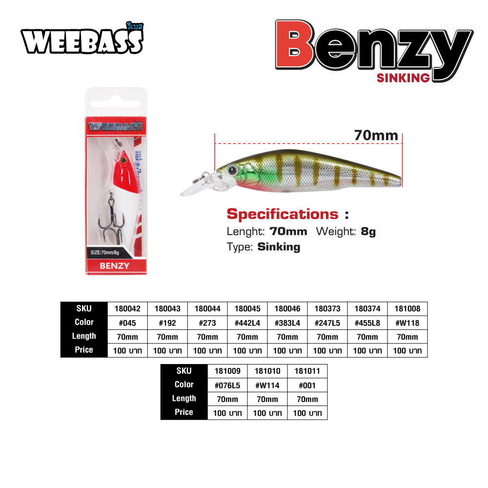 WEEBASS LURE (เหยื่อปลั๊ก) - รุ่น BENZY SINKING