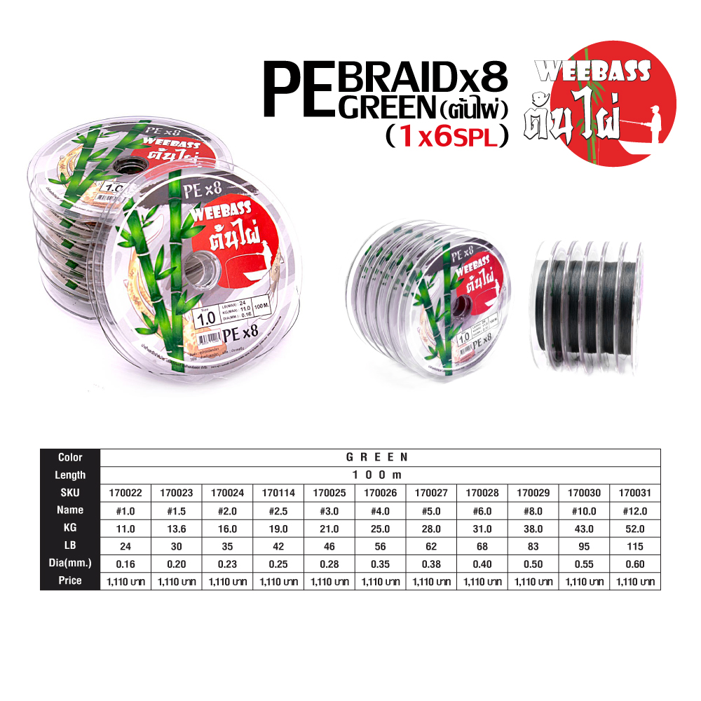 WEEBASS สายเอ็น - รุ่น PE ต้นไผ่ x8 100M , GREEN (1x6SPL)