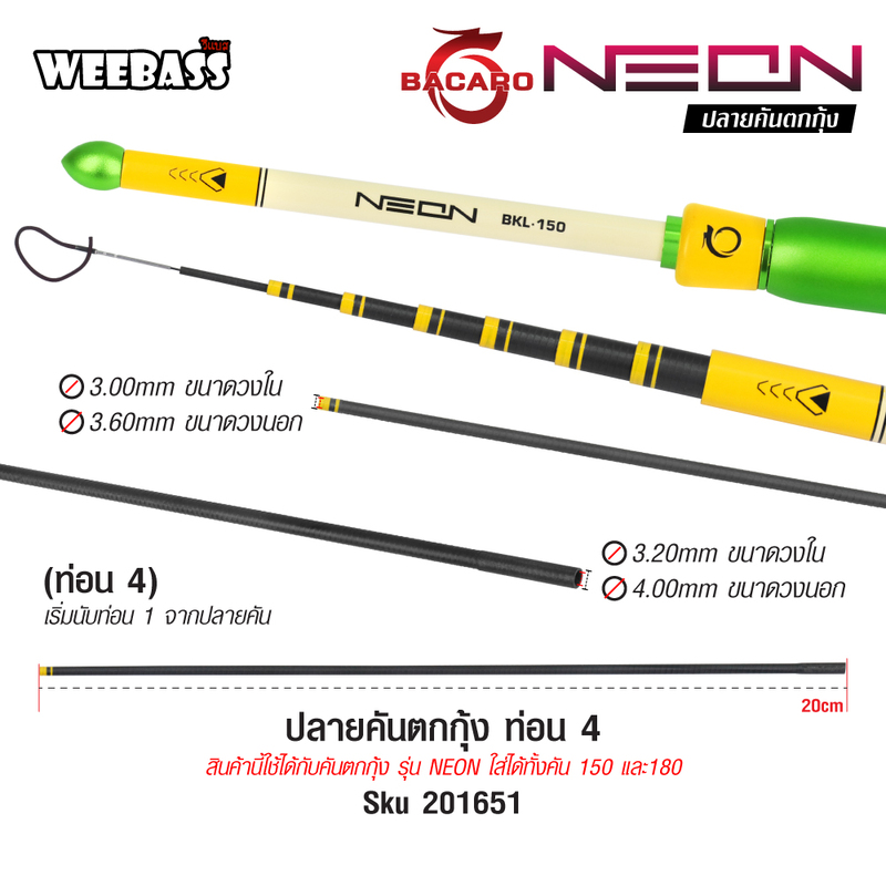 BACARO ปลายคันตกกุ้ง - รุ่น NEON ท่อน 4 Yellow