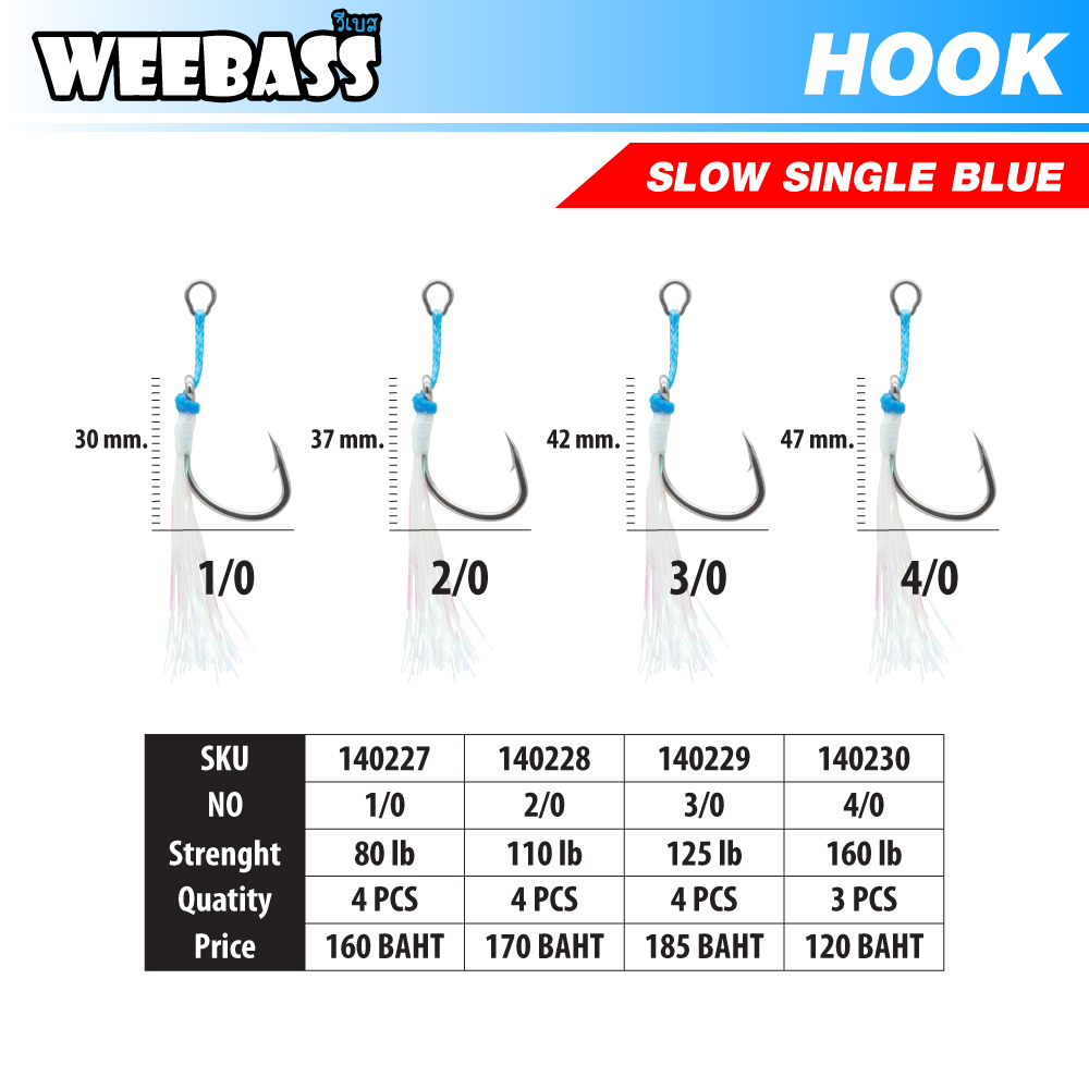 HARBOR ตาเบ็ด - รุ่น SLOW SINGLE ASSIST HOOKS , BLUE GLOW FLASHY