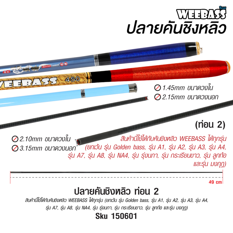 สินค้านี้ใช้ได้กับWEEBASSคันชิงหลิวทุกรุ่น (ยกเว้นรุ่นGOLDEN BASS ,รุ่นA1 ,รุ่นA2 ,รุ่นA3 ,รุ่นA4 ,รุ่นA7 ,รุ่นA8 ,รุ่นNA4)