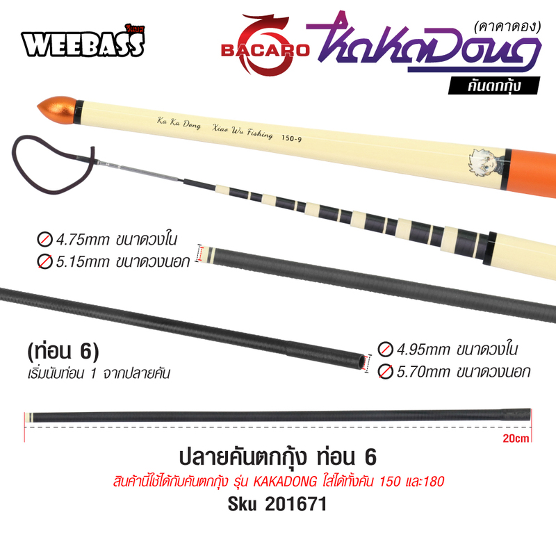 BACARO ปลายคันตกกุ้ง - รุ่น KAKADONG ท่อน 6 Orange