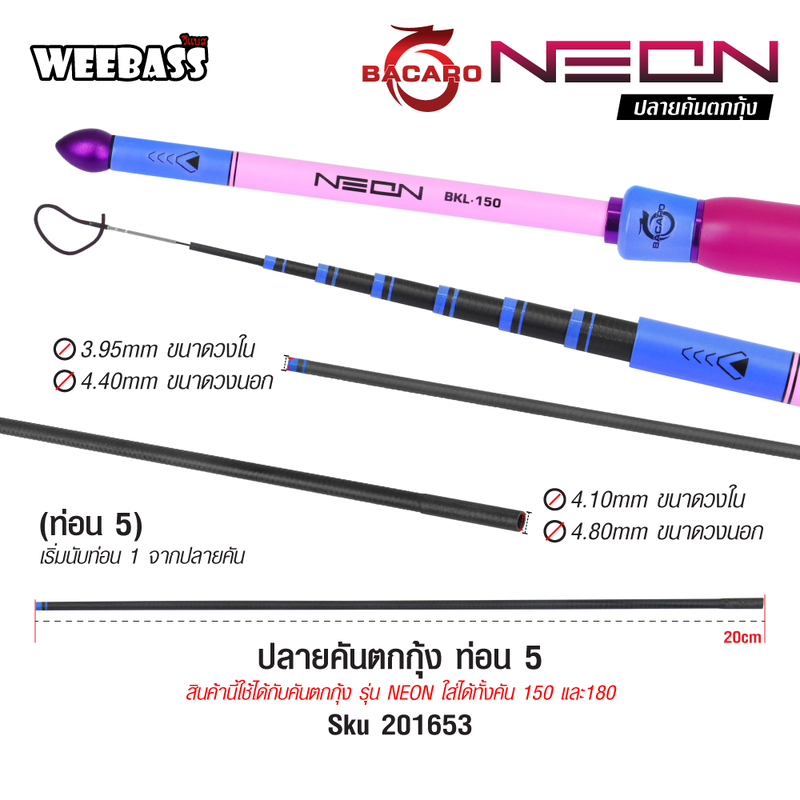 BACARO ปลายคันตกกุ้ง - รุ่น NEON ท่อน 5 Blue
