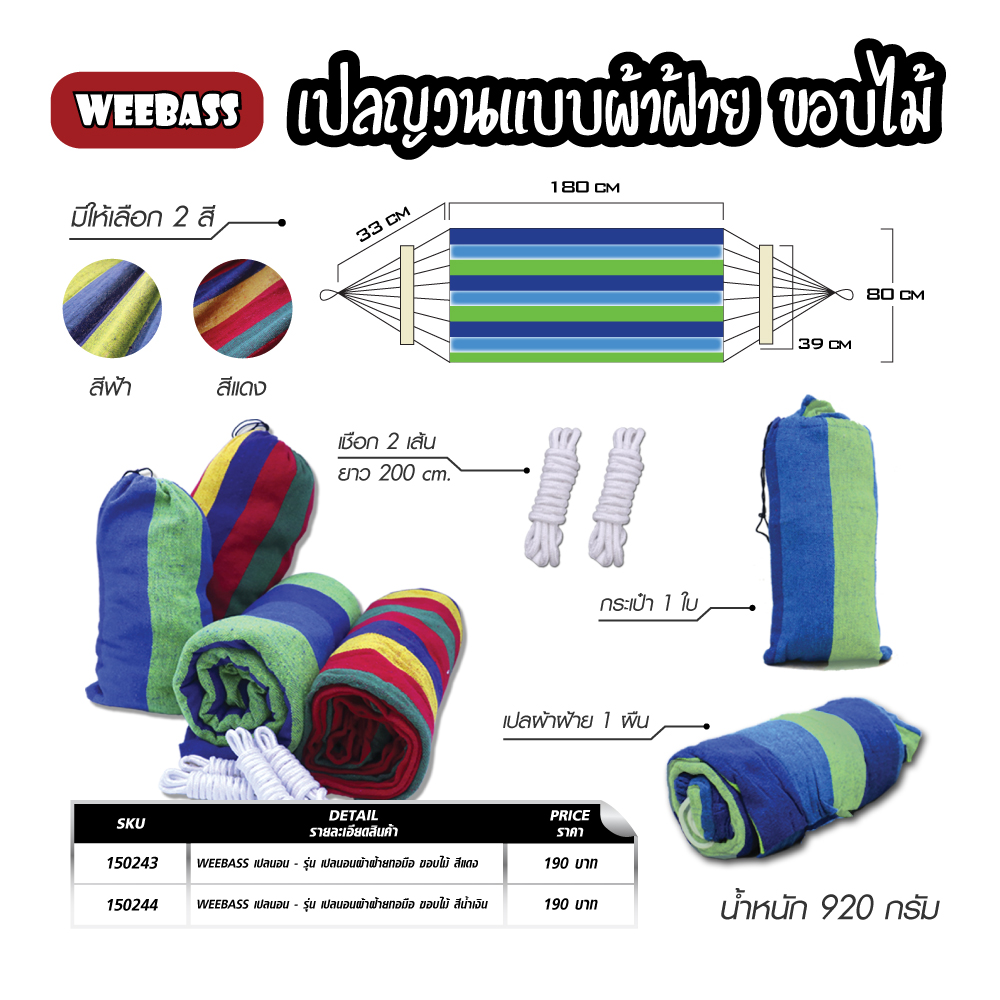 WEEBASS เปลนอน - รุ่น เปลนอนผ้าฝ้ายทอมือ ขอบไม้