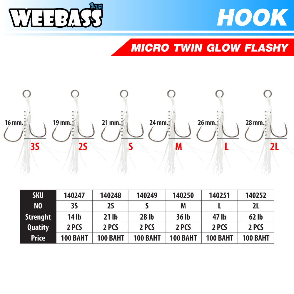 HARBOR ตาเบ็ด - รุ่น MICRO TWIN ASSIST HOOKS , GLOW FLASHY (2pcs)